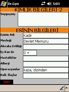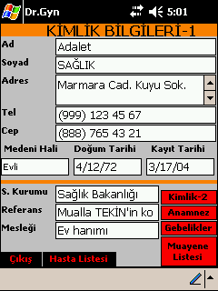 Hastalara ait kimlik ve özgeçmiş bilgilerini 5 ekranda görülmektedir.